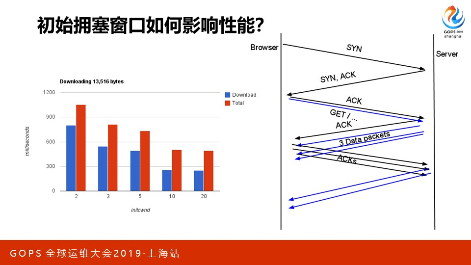 传输路径的第二个优化点是慢启动。系统自带的TCP协议栈,为了避免瓶颈路由器丢包,会缓缓加大传输速度。它的起始速度就叫做初始拥塞窗口。