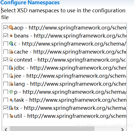 1)将所有组件加入到容器中,并能正确获取。首先创建Spring的配置文件,并在配置文件中选择需要的名称空间: