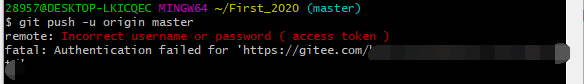 想着把git给学起来,注册了个码云,打算创建个仓库来练手,结果最后push的阶段报错。