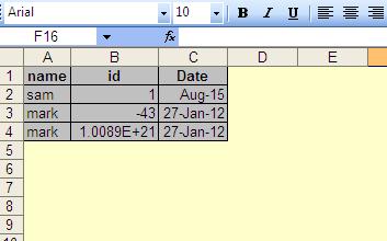 The background color may (not sure) be different according to some cells range. Say from Cell 0- 5 (Cell A-E in excel) is red color, 6-12 is green and so on and so forth.