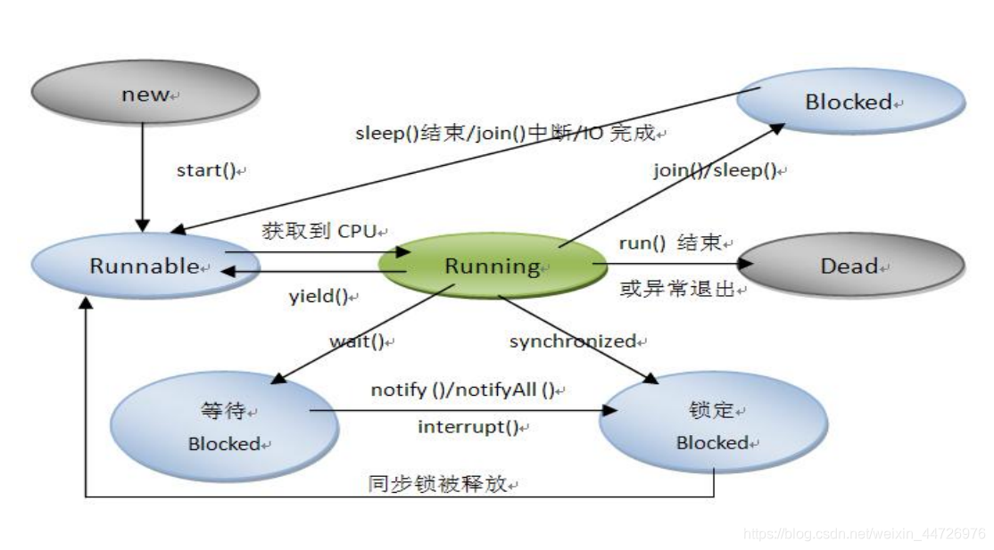 - 某个线程调用notify(),notifyAll()方法是将等待队列的线程转移到入口队列,然后让他们竞争锁。
