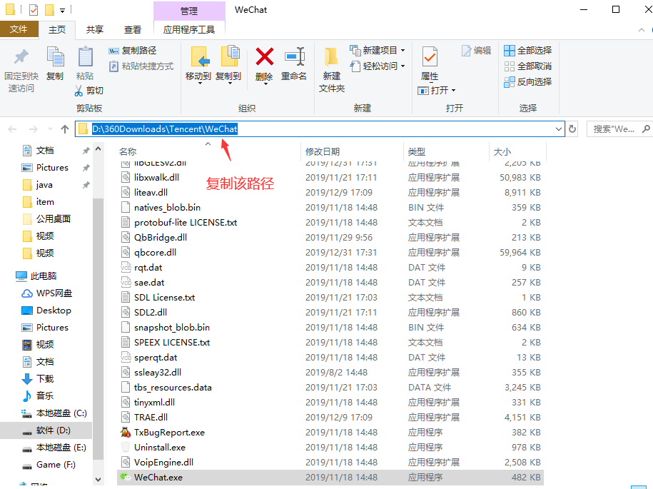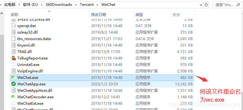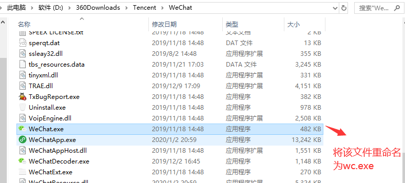 7.其实到上一步就已经完成了,有的人觉得很麻烦,我鼠标双击比你这快多了,万一输错了还进不去呢,是的,我也这么觉得,这里再教给你一个小技巧。找到微信所在目录,将微信的快捷方式文件重命名,随便什么字母都行,越简单越好,只要自己记得就行,重复上面操作,简单又装逼的小技巧就学会了。