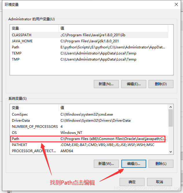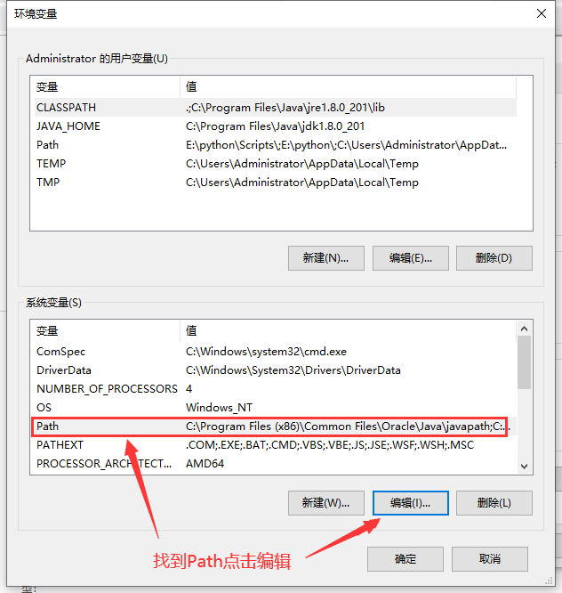 4.找到系统环境变量,再说一遍是系统环境变量在下面,点击编辑