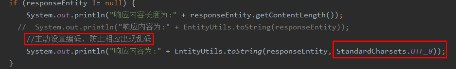 System.out.println("响应内容为:" + EntityUtils.toString(responseEntity, StandardCharsets.UTF_8));