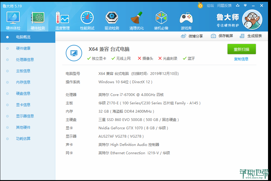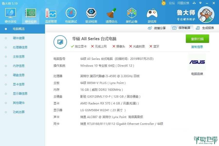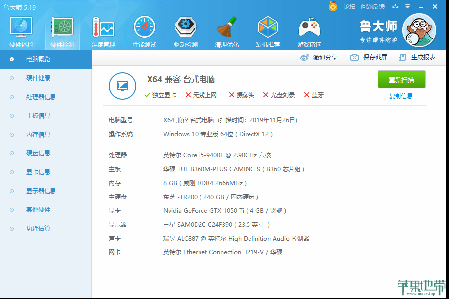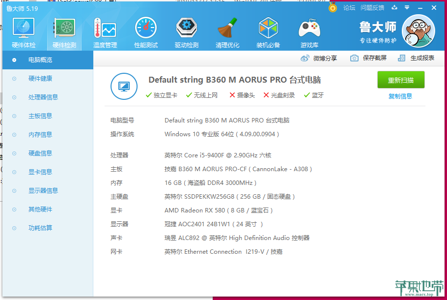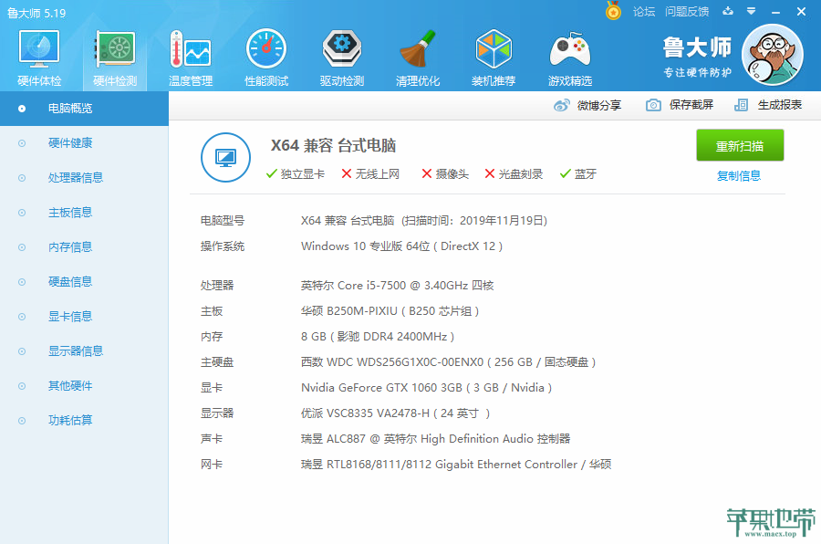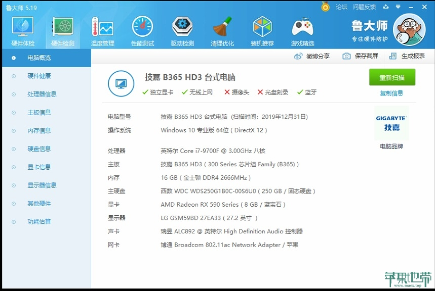 黑苹果还是一个很折腾的过程,祝大家顺利,有什么问题可以给我留言。最后放几张我远程过鲁大师配置截图,供大家参考,按上边配置后可以直接用本站的驱动工具一键安装,如需远程安装请【点击这里】。