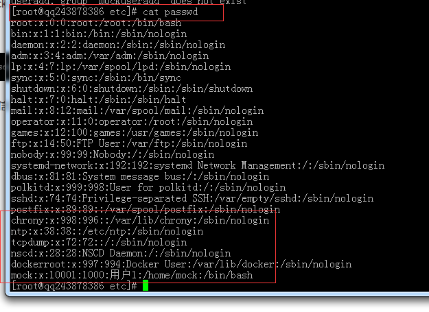 新建了一个 用户名为 mock 密码为mock 用户id 为10001 备注为用户1 默认用户家目录为 /home/mock 用户组为 mock 的用户