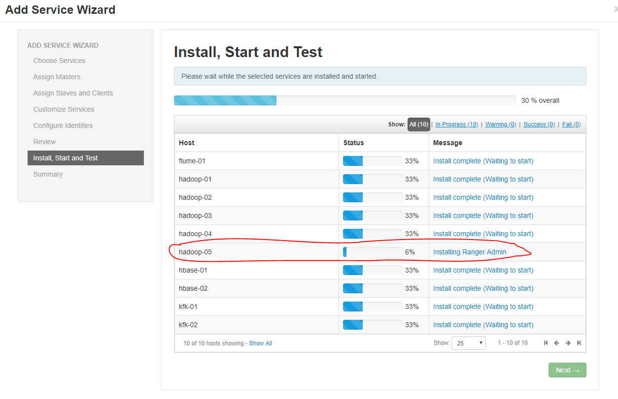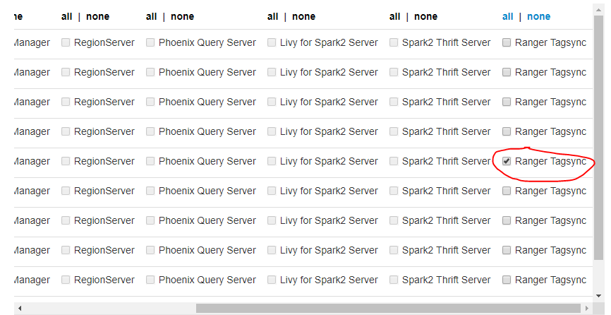 4. 选择需要安装到哪一台服务器,注意Ranger Usersync和Ranger Admin必须安装到同一台服务器