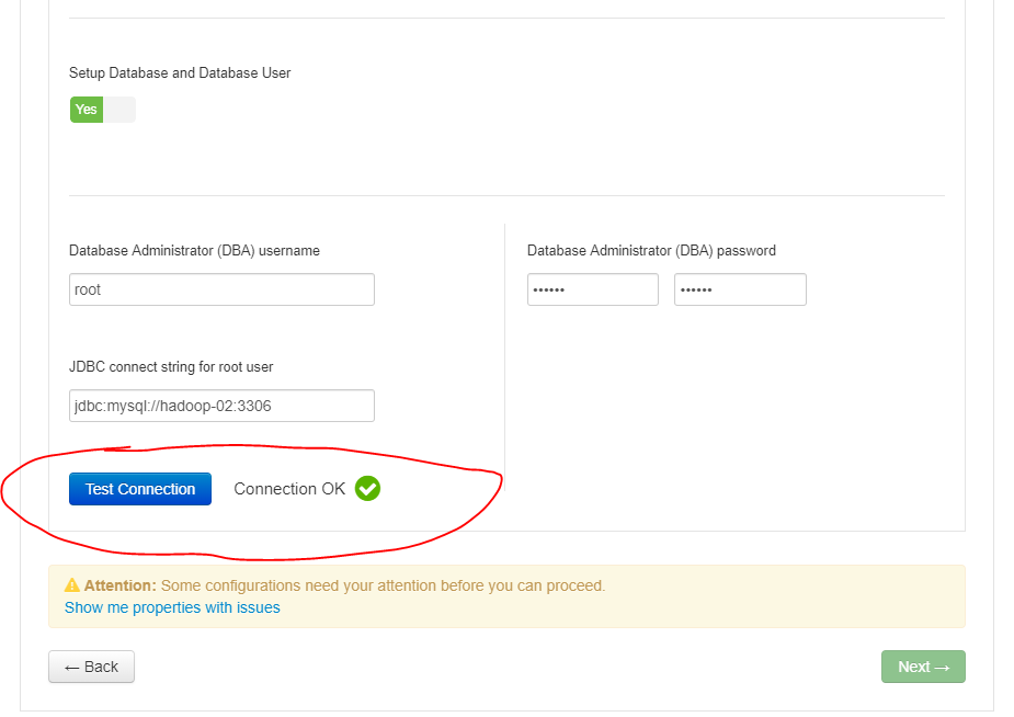 - DB FLAVOR 选择MySQL,依据ambari使用的数据库来定