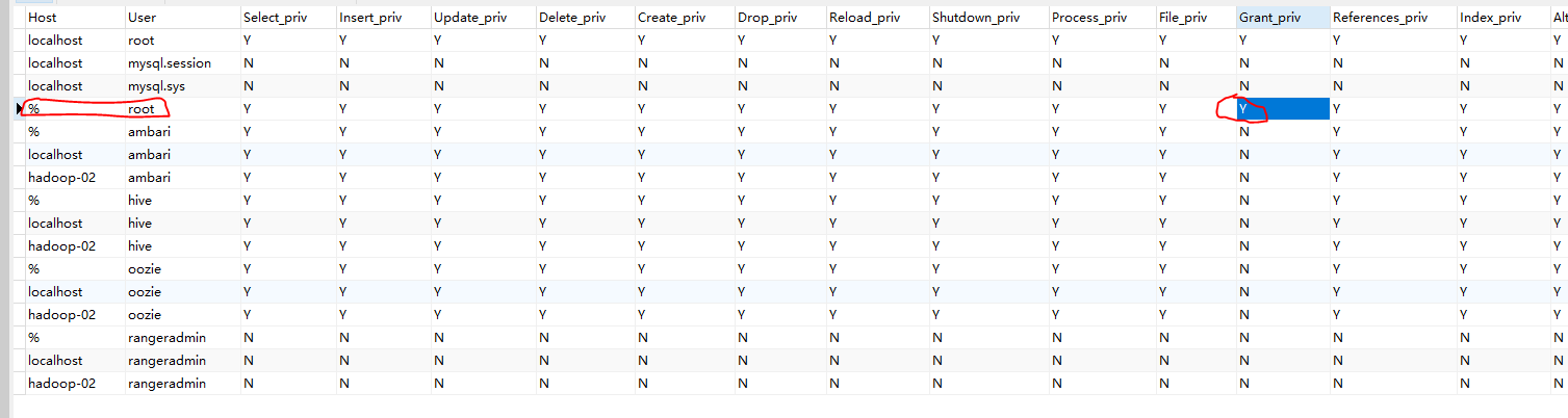 查看root用户发现没有授权权限(在mysql库user表中查看),将 Grant_priv 修改位 Y, 再试一次,希望成功!