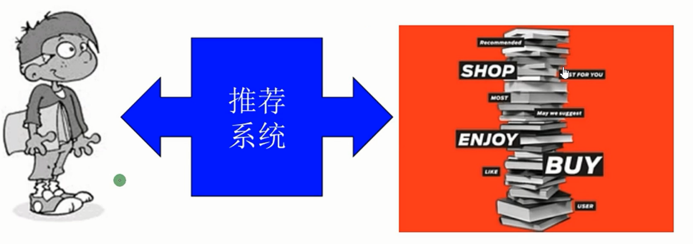从上图中可以看到,左边是没有明确需求的用户,但是商品信息量过大,推荐系统就是在大量商品中找到用户喜欢的商品推荐给用户,推荐系统是连接用户和商品的一个桥梁。