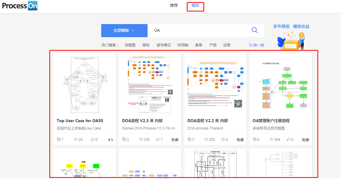 偶然间发现process on的模板商城,也可以学习到业务框架知识,甚至有现成的图