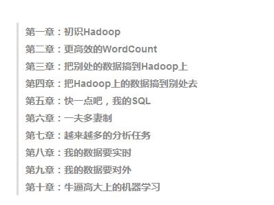 你不会Java?Shell、Python都可以,有个东西叫Hadoop Streaming。如果你认真完成了以上几步,恭喜你,你的一只脚已经进来了。