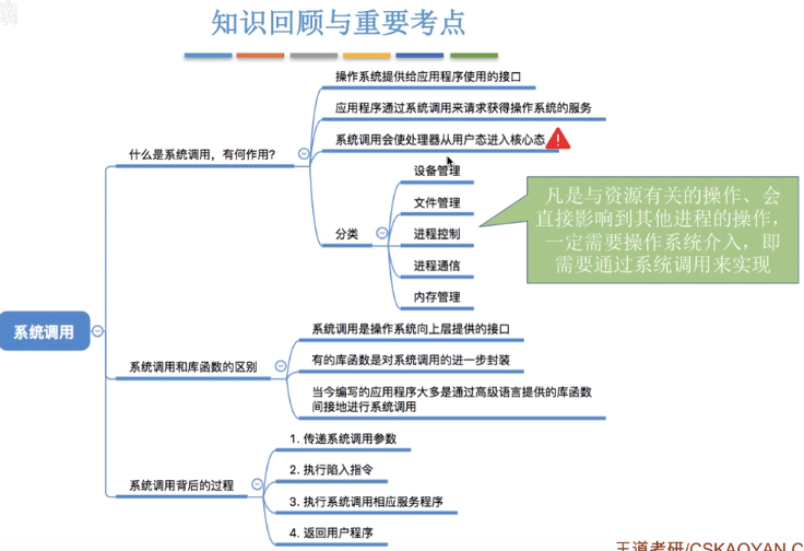 系统调用:向操作系统发出请求,然后操作系统去管理这些请求,而不是直接去实现相应操作,避免了资源冲突和混乱