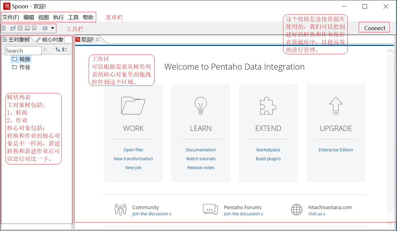 解决方案:请检查:C:\Users\%username%\.kettle\repositories.xml 、%kettle_home%\.kettle\repositories.xml 、%kettle_home%\.kettle\shared.xml 等文件中是否存在乱码,如果存在乱码,就将乱码内容删除。然后将同目录下的 .spoonrc 及 db.cache-* (*为 kettle 的版本号) 删除。重新运行 Spoon.bat 即可。