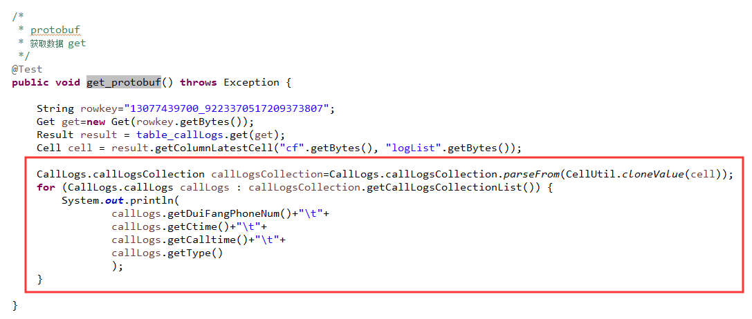 package com.hbase.test; message callLogs { required string duiFangPhoneNum=1;//对方手机号 required string ctime=2;//通话时间 required string calltime=3;//通话时长 required string type=4;//类型 0主叫 被叫 } message callLogsCollection { repeated callLogs callLogsCollection=1;//嵌套 }使用