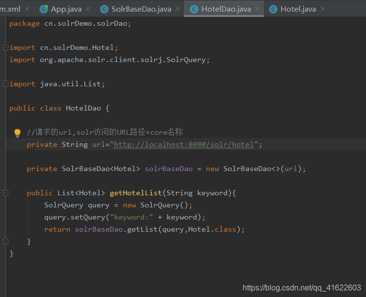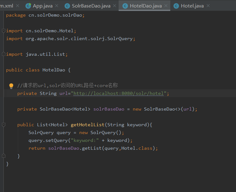 private SolrBaseDao<Hotel> solrBaseDao = new SolrBaseDao<>(url);