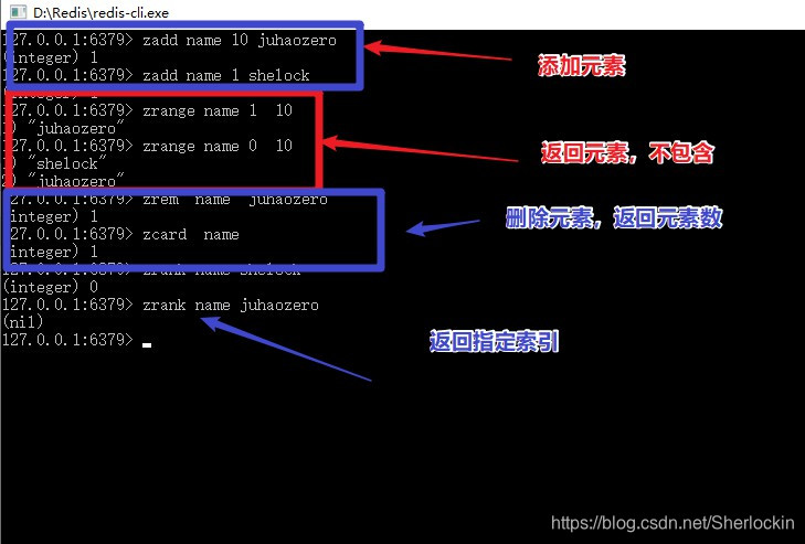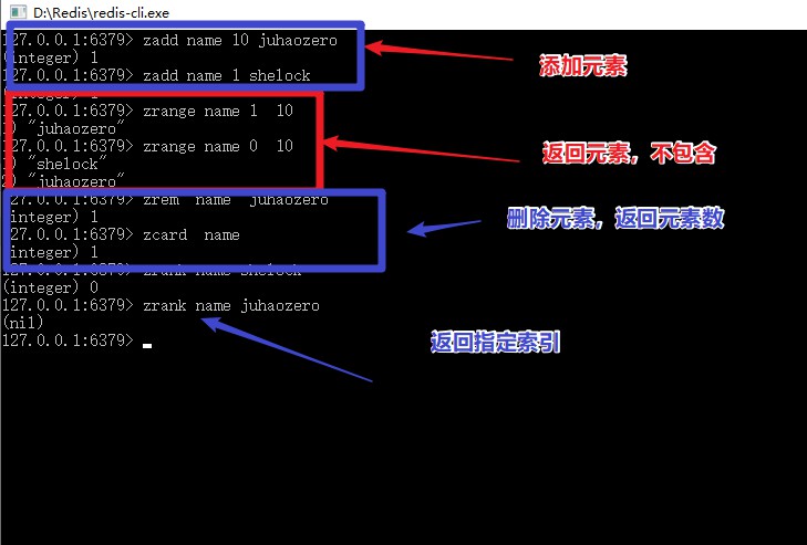 | zrang key 开始 结束 | 返回集合中指定区间内的元素 |