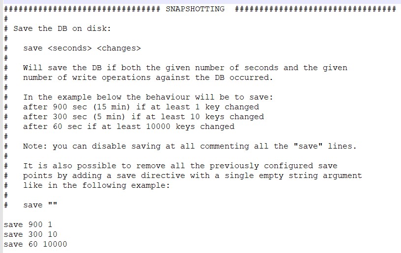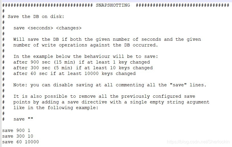 当数据在15分钟内改变了一个key,就会执行持久化机制