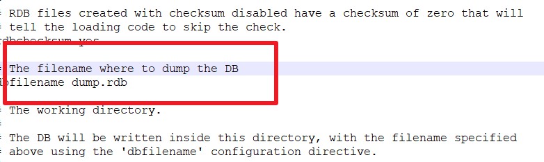 RDB(Redis DataBase)持久化策略就是在符合一定条件下将内存所有数据持久化到磁盘中dump.rdb文件中。RDB策略是redis默认持久化策略。也叫快照策略。