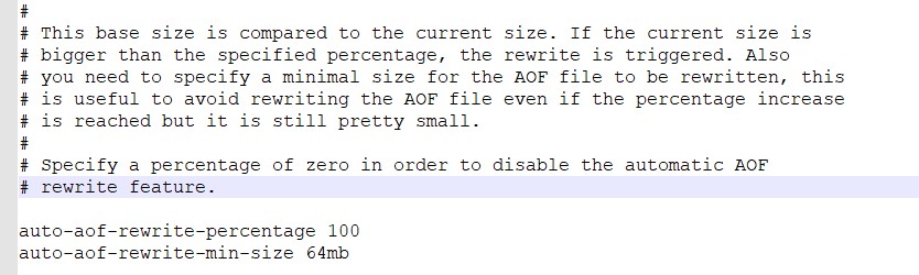 这个基本大小与当前大小进行比较。如果当前大小大于指定的百分比,将触发重写。您需要为要重写的AOF文件指定一个最小的大小