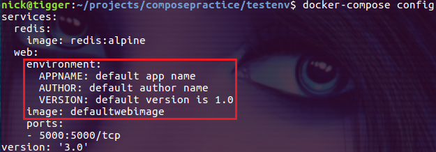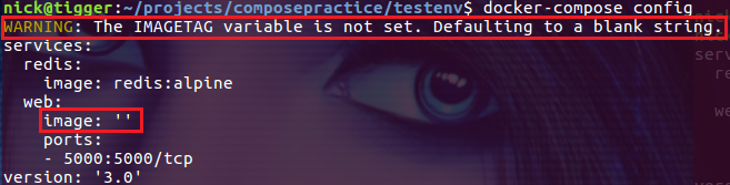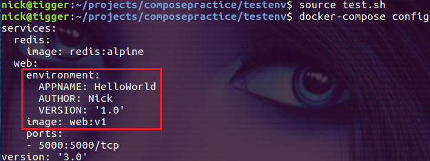 $ source test.sh $ docker-compose config
