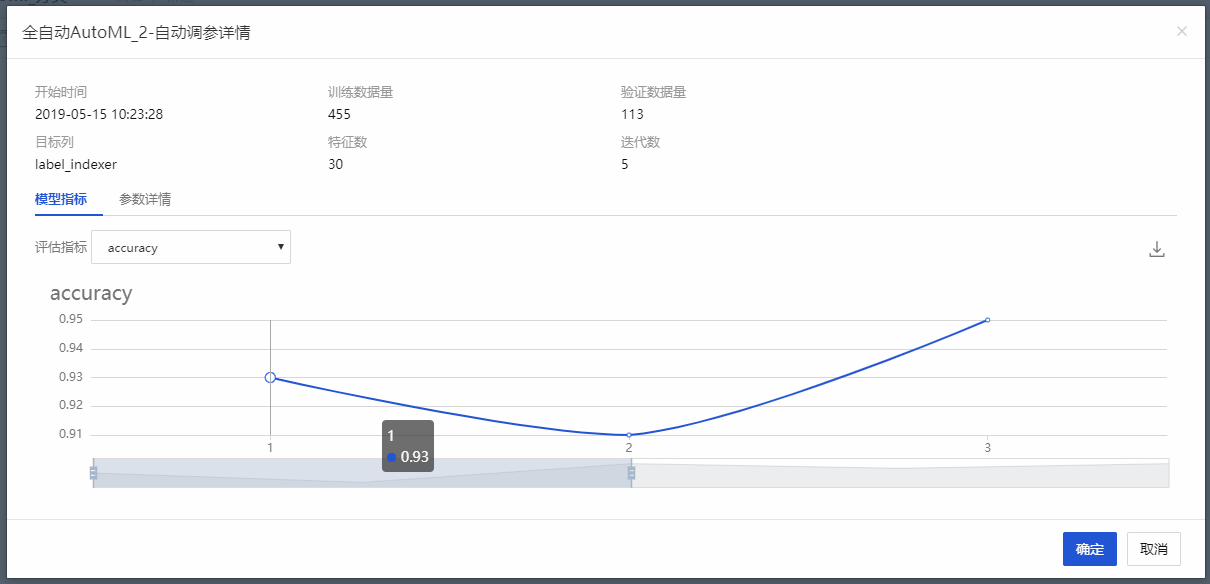 支持机构化数据自动调参建模,在不通过人为来设定参数的情况,通过某些学习机制,让系统智能地去调节这些超参数,让整个机器学习训练流程做到自动化。并且支持实时监控训练进度,分析自动调参详情。