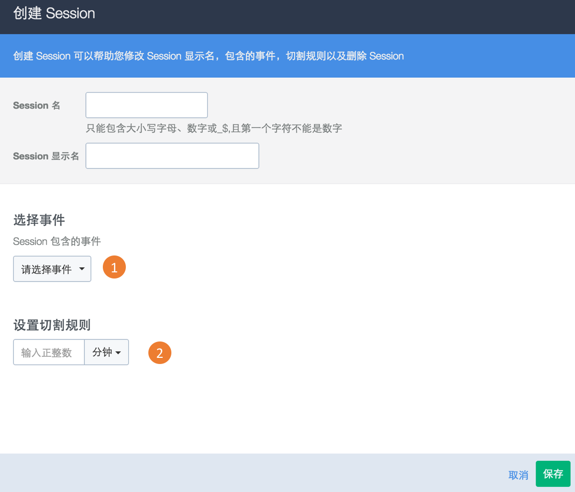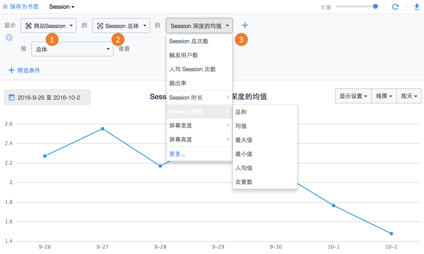 定义:等于所有 Session 内事件数之和除以总的 Session 数。 2.1 选择创建的 Session