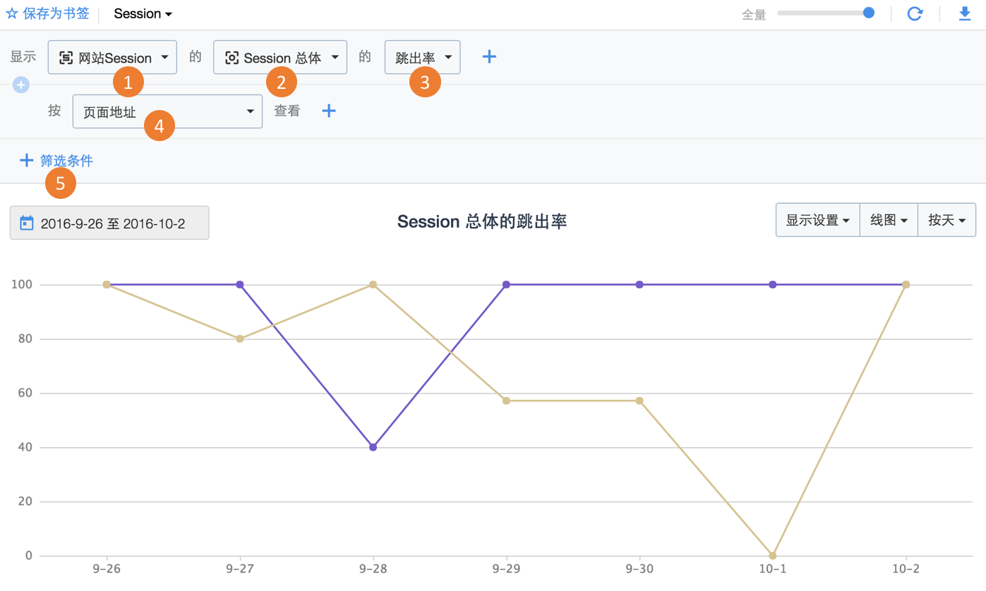 定义:当用户在某个页面结束了该 Session 时即视为退出,所以页面退出率等于退出的页面数除以该页面的总浏览次数。 2.1 选择创建的 Session