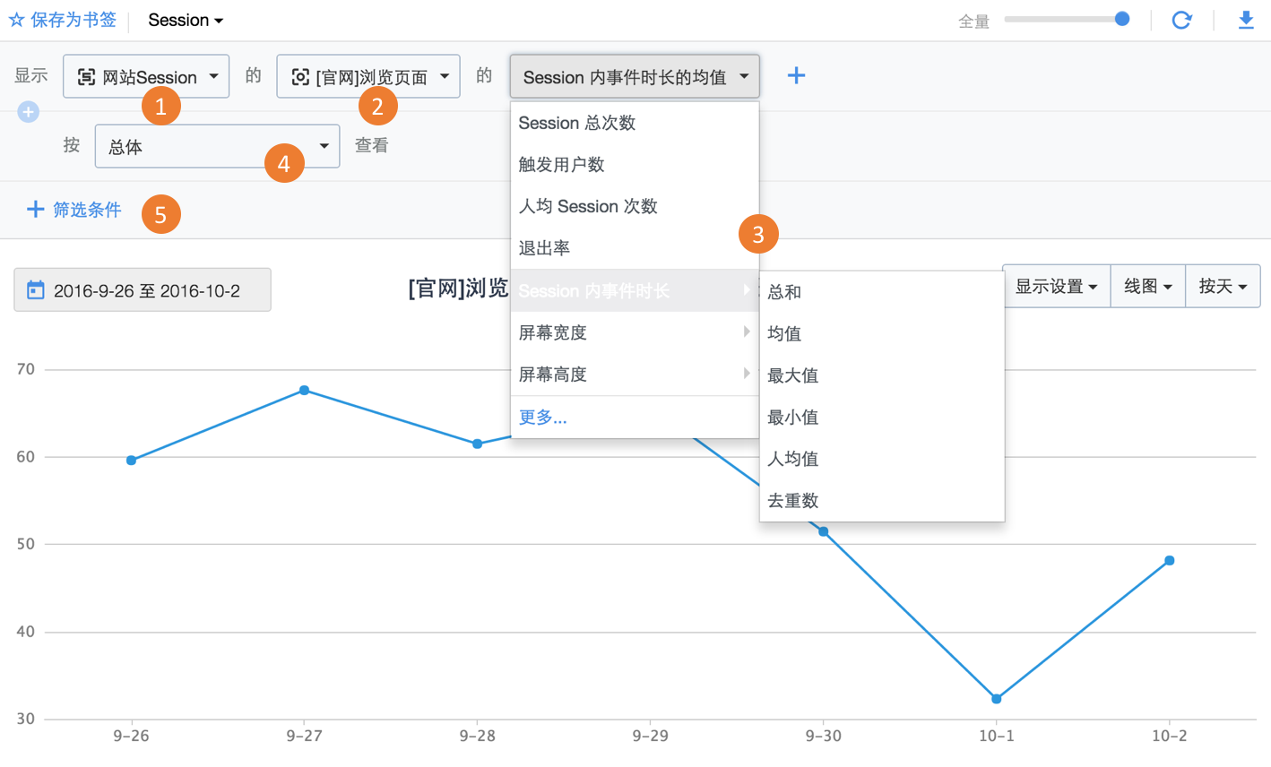 定义:等于所有用户的 Session 时长之和除以 Session 数。 1.1 选择创建的 Session