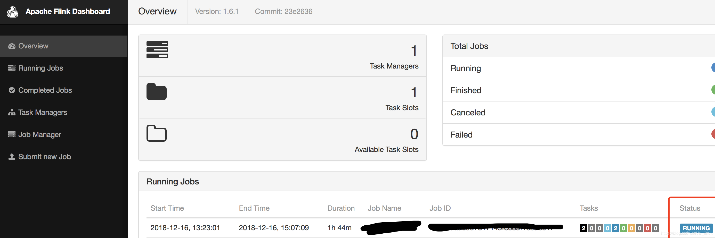 提交任务后,即可去flink的web界面查看提交的任务,如图显示running