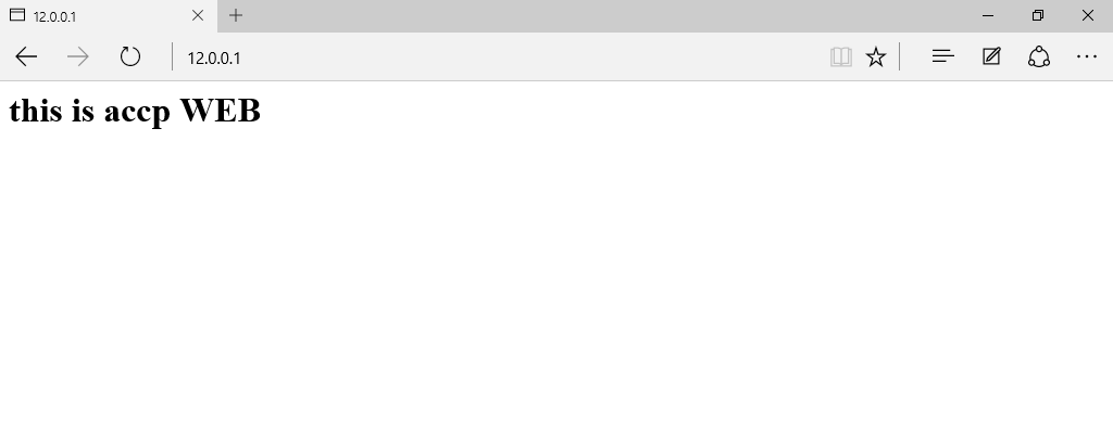 在win10浏览器上,访问 12.0.0.1,因为做了NAT模式和存储共享,所以是可以直接访问到两台Apache服务器上的网页的,这就说明群集起作用了。