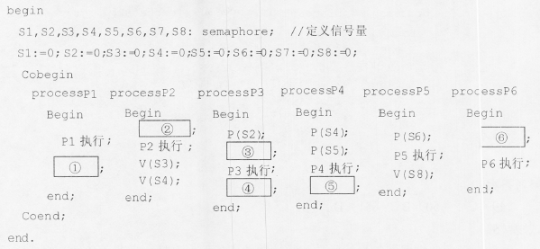 D.9//P1程序段 Begin{ a=0 a=1 P(S1) c=a+1 V(S2) a=a+c } End //P2程序段 Begin{ b=0 b=b+3 V(S1) b=a+b P(S2) c=b+c }