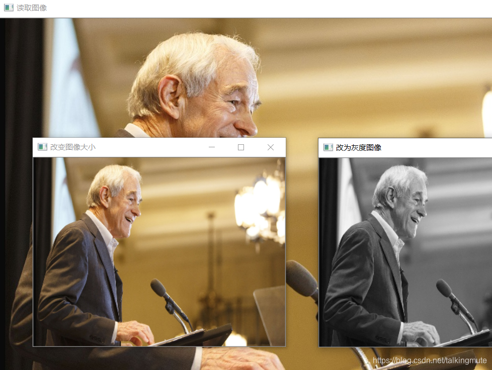 //cvtColor函数是图片类型转换函数,第三个参数COLOR_RGB2GRAY就是把RGB彩色数值转换为GRAY灰度黑白数值。