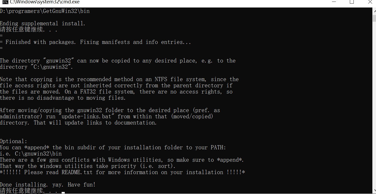 完成后会自动生成一个GetGnuWin32目录