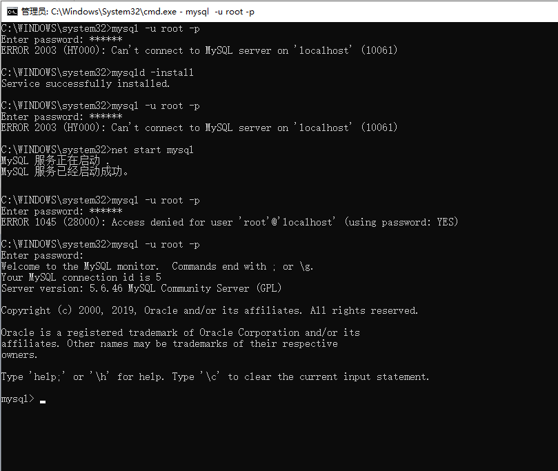 ERROR 2003 (HY000): Can't connect to MySQL server on 'localhost' (10061)