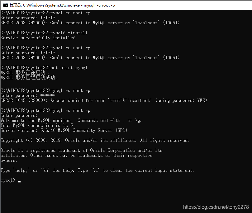 ERROR 1045 (28000): Access denied for user 'root'@'localhost' (using passwor:yes)