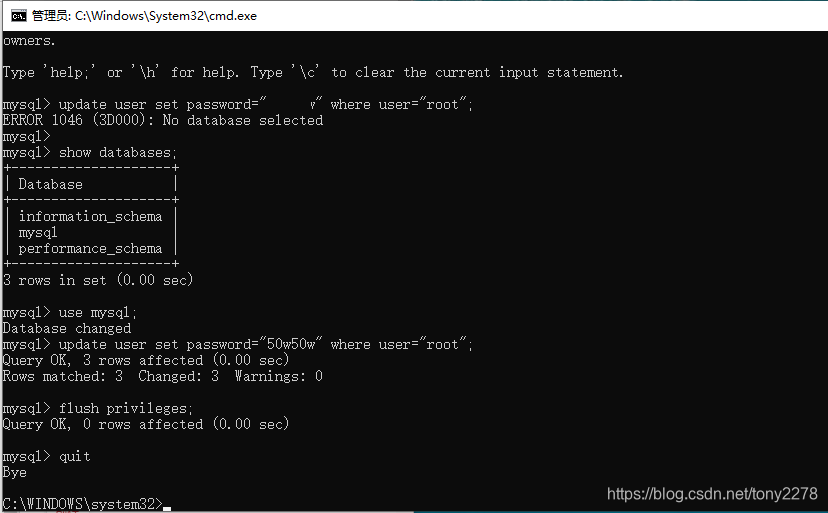 接下来就是用sql来修改root的密码