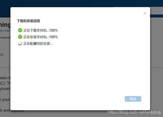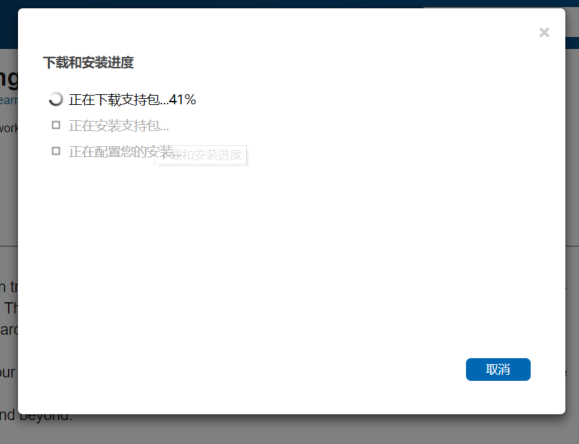 登陆之后,就开始下载了,因为外网原因,下载很慢,也很可能失败,反正失败了只能重来一次;坚持是胜利;