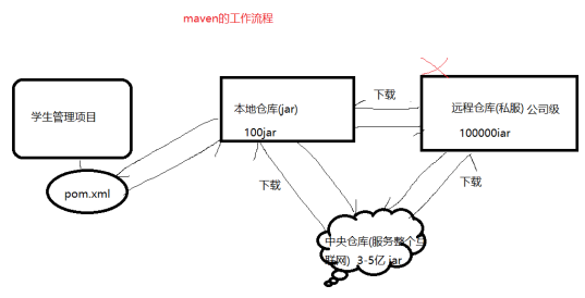 maven的工作流程:本地仓库->私服->中央仓库->其他远程仓库,上一个没有,就去下一个寻找,私服和中央是仓库都需要联网