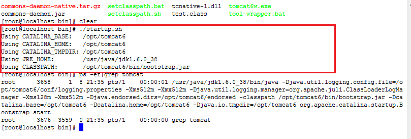 切换到tomcat主目录下的bin目录(cd usr/local/tomcat/bin)
