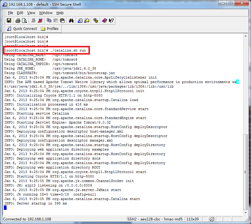 但是可以通过运行./catalina.sh run启动,就可以像windows中一样查看tomcat启动信息了。