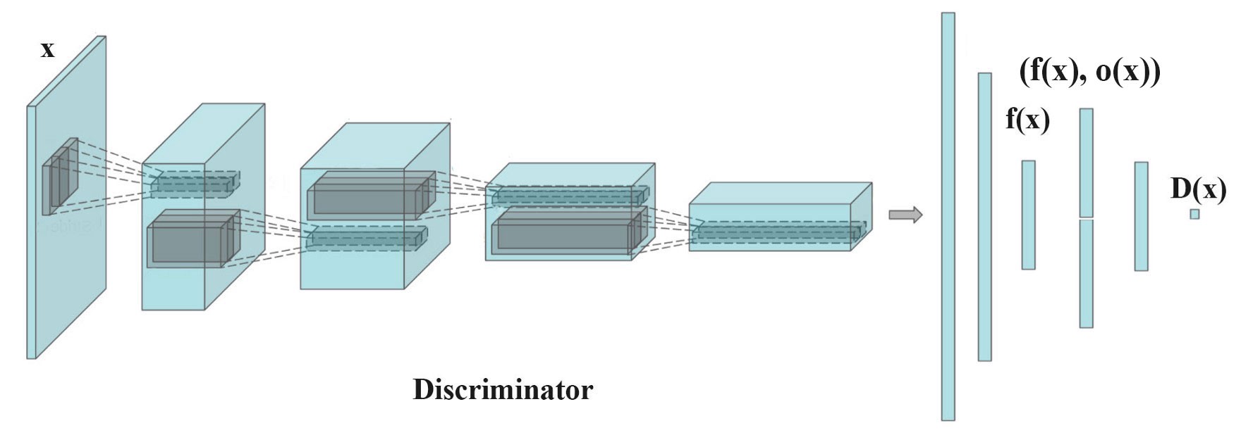 模式坍塌时,所有创建的图像看起来都相似。为了缓解该问题,我们将不同批次的真实图像和生成的图像分别输入到鉴别器中,并计算图像x与同一批次中图像的相似度。我们将相似度o(x)附加到鉴别器的密集层(dense layers)之一中,以对该图像是真实图像还是生成图像进行分类。