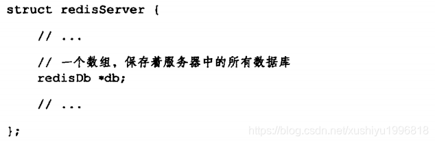 Redis服务器将所有数据库都保存在服务器状态redis.h/redisServer结构的db 数组中,db数组的每个项都是一个redis.h/redisDb结构,每个redisDb结构代表一 个数据库: