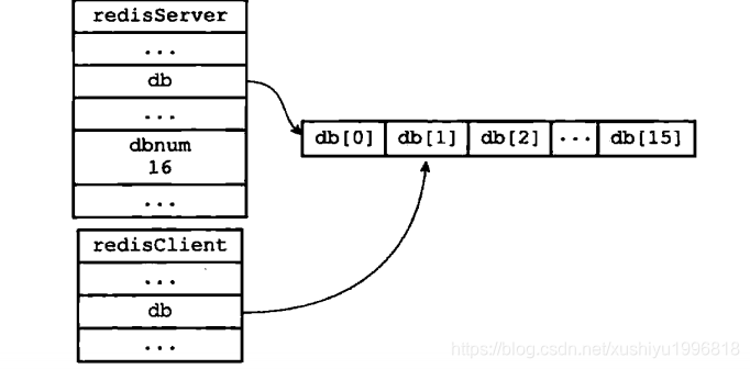 redisClient.db指针指向redisServer.db数组的其中一个元素,而被指向的元 素就是客户端的目标数据库。