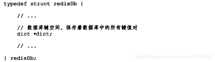 Redis是一个键值对(key-value pair)数据库服务器,服务器中的每个数据库都由 一个redis.h/redisDb结构表示,其中,redisDb结构的dict字典保存了数据库中的 所有键值对,我们将这个字典称为键空间(key space) :