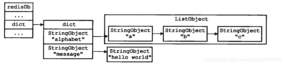 举个例子,如果键空间当前的状态如图所示,那么在执行以下命令之后