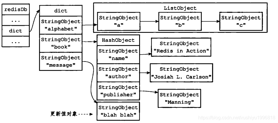 对一个数据库键进行更新,实际上就是对键空间里面键所对应的值对象进行更新,根据 值对象的类型不同,更新的具体方法也会有所不同。