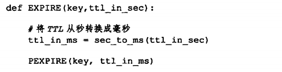 通过EXPIRE命令或者PEXPIRE命令,客户端可以以秒或者毫秒精度为数据库中的某 个键设置生存时间(Time To Live, TTL), 在经过指定的秒数或者毫秒数之后,服务器就会 自动删除生存时间为0的键: