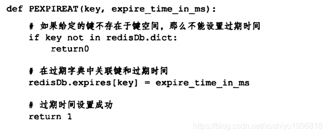 当客户端执行PEXPIREAT命令(或者其他三个会转换成PEXPIREAT命令的命令)为一个数据库键设置过期时间时,服务器会在数据库的过期字典中关联给定的数据库键和过期 时间。