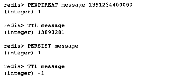 可以看到,当PERSIST命令执行之后,过期字典中原来的book键值对消失了,这代 表数据库键book的过期时间已经被移除。